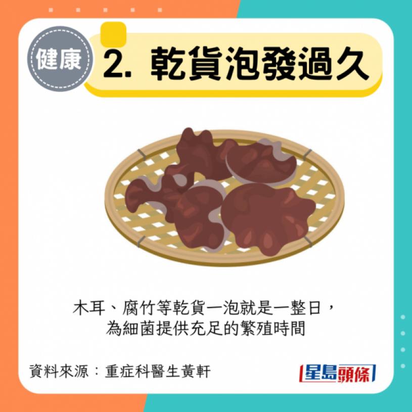木耳、腐竹等乾貨一泡就是一整日,為細菌提供充足的繁殖時間。