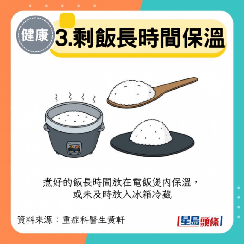 煮好的飯長時間放在電飯煲內保溫,或未及時放入雪櫃冷藏。