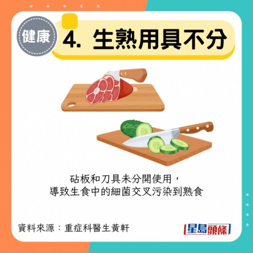 砧板和刀具未分開使用,導致生食中的細菌交叉污染到熟食。