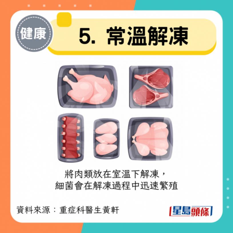 將肉類放在室溫下解凍,細菌會在解凍過程中迅速繁殖。
