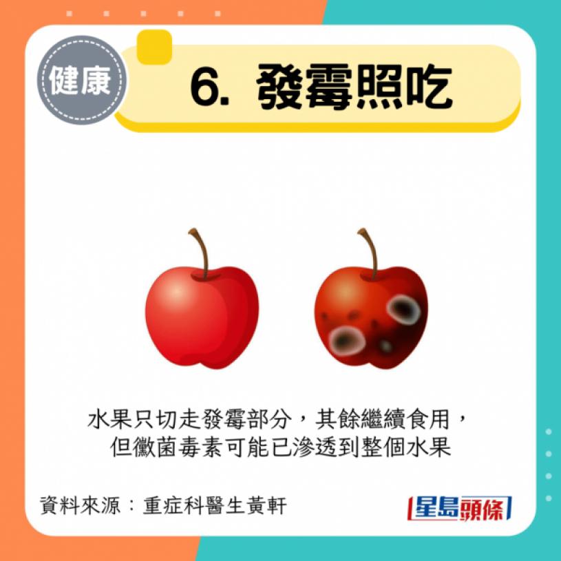 水果只切走發霉部分,其餘繼續食用,但黴菌毒素可能已滲透到整個水果。