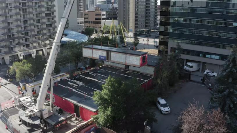 【星岛综合报道】在卡加利市中心西端一条繁忙的街道上,有一幢新的租屋大楼正在拔地而起——但这幢建筑并非从零开始建造,而是将预制单元逐块吊运到位。
