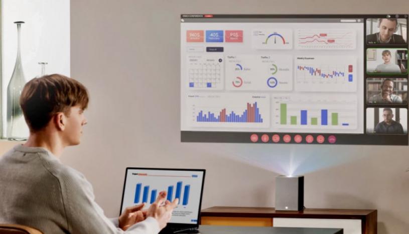 虽然搭载三色雷射光源(即红、绿、蓝各自独立的雷射模组),但 CineBeam S 的亮度仅为 500 ANSI 流明,可能限制其在光线明亮环境下的使用。不过宣传照中仍展示了白天使用的场景,包括作为视像会议或团队虚拟会议的第二屏幕。