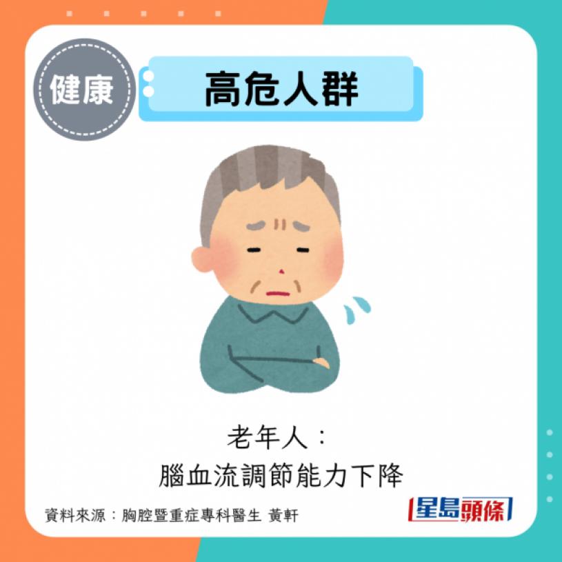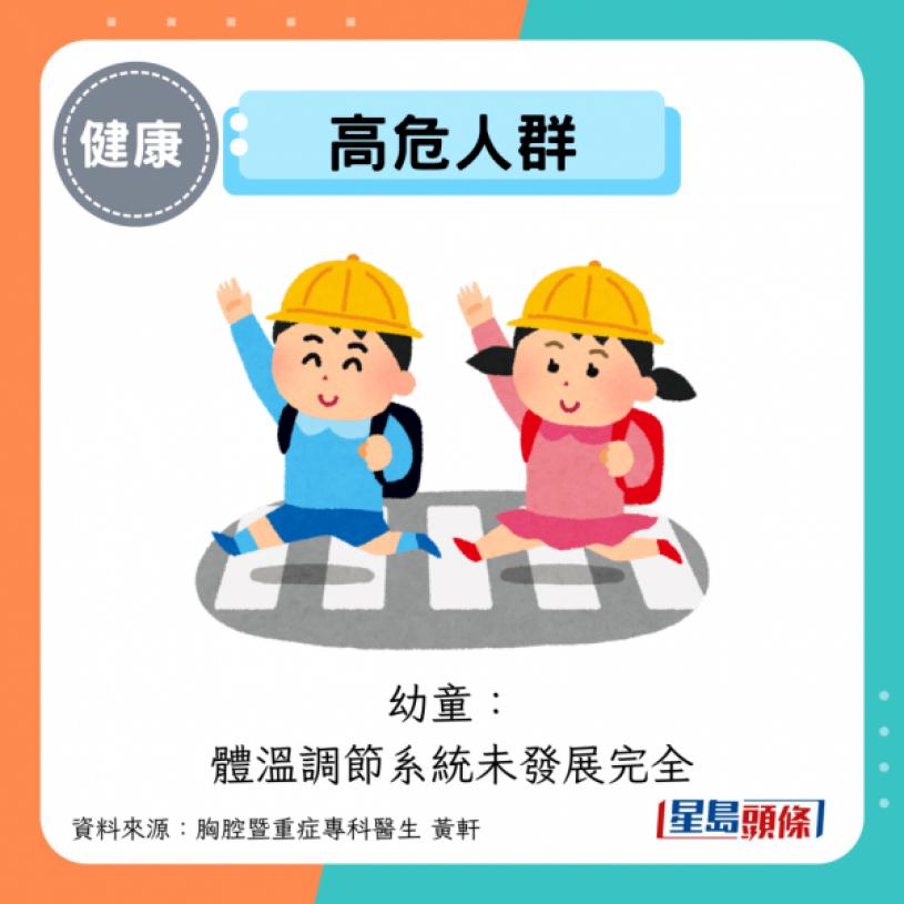 黃軒醫生表示,這些人群對熱的耐受性較低,更容易出現神智不清、語無倫次、甚至意識喪失等危險症狀。
