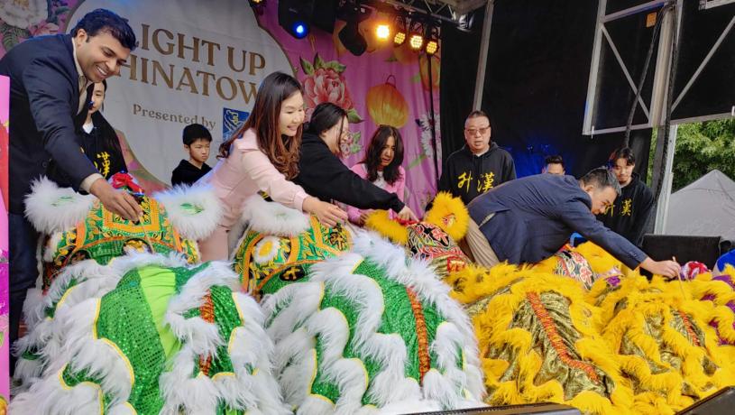 嘉賓致詞完畢,就一一為現場六隻「獅子」點睛,在精彩的舞獅環節之後,遊客們開始融入本屆「點亮華埠!」的各個亮點。