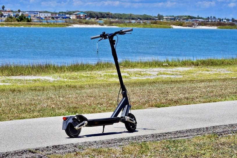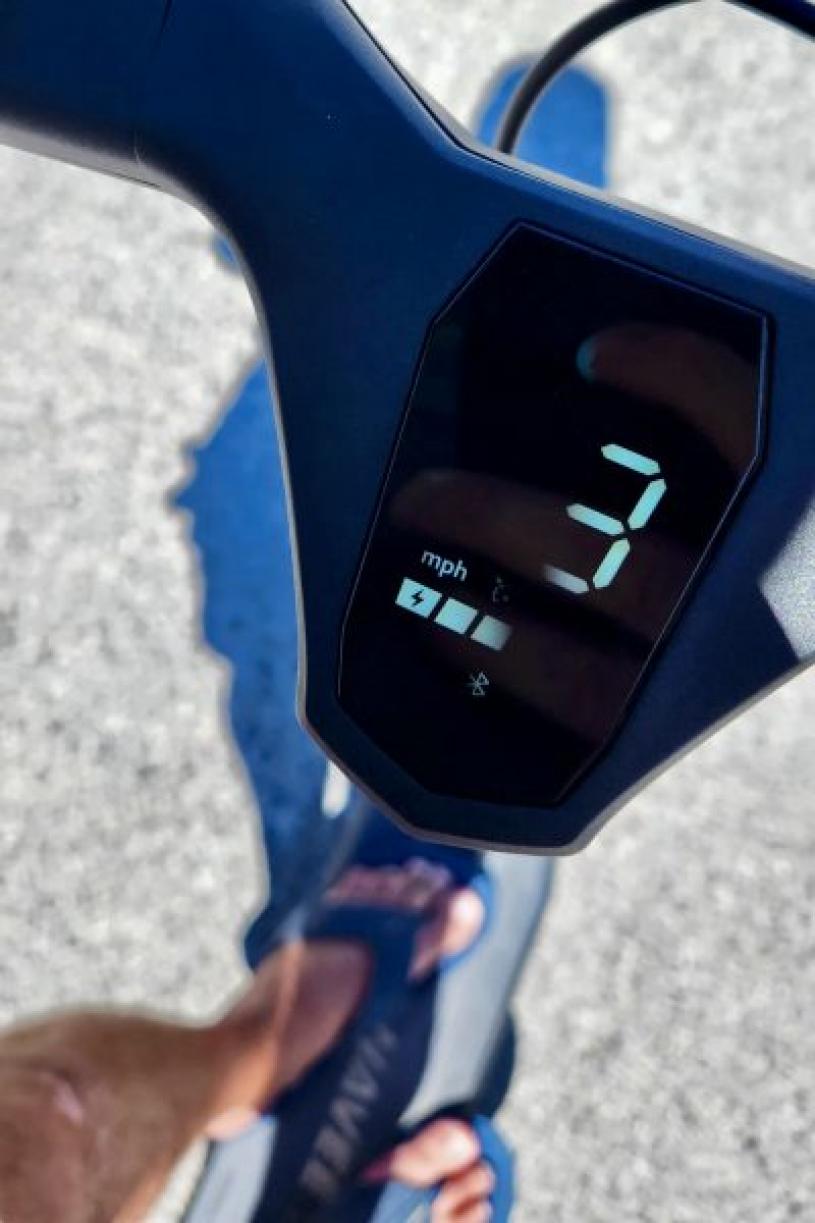 雖然原廠聲稱單次充電可達75公里,但實測下對於一位190公分、104公斤的騎士而言,真實續航介乎27至35公里,已算表現可觀。搭載597Wh 電池、1350W 峰值後輪驅動馬達,連極慢的「行人模式」(時速4.8公里)亦能穩定運行,甚至能於草地、斜路、砂地中輕鬆行走,展示極強動力與穩定性。