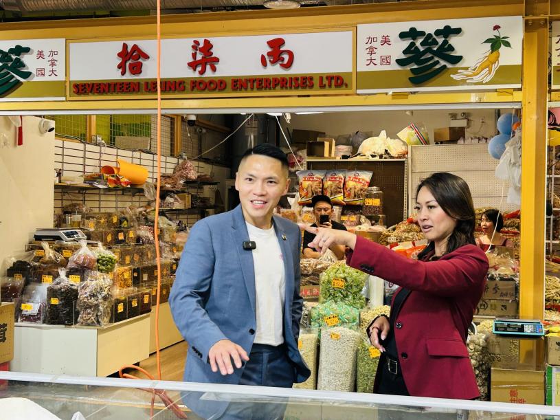 身兼旅游国务秘书的华尔迪自带明星光环,所到之处都受到小企业欢迎。此趟造访本拿比华裔社群和商铺,选择去丽晶广场买菜了解民生物价、到小火锅店考察餐厅生意,还到手摇饮店学习如何制作冰饮。
