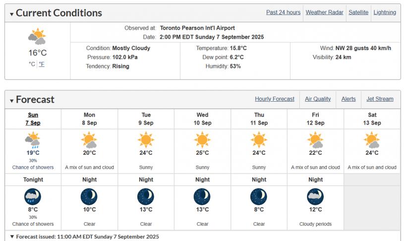 【星島綜合報道】多倫多經過短暫的陰雲、強風與清涼氣溫後,本周將再度迎來高溫天氣。天氣預測顯示,未來數日陽光普照,氣溫最高可升至攝氏25度,不過夜間仍會急降至約10度,展現秋意。