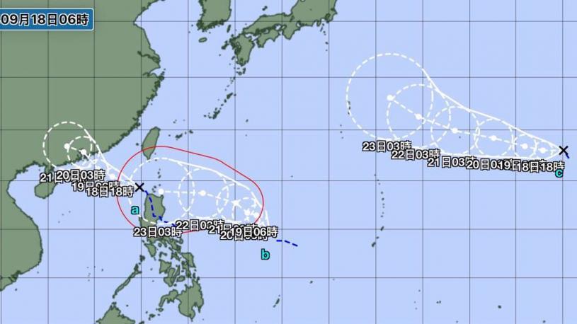 热带低气压TD21位于菲律宾东方海面,距离台湾逾1500公里,今或将增强为台风桦加沙,未来有机会朝台湾东南方海面及巴士海峡前进,接近时可能达中级台风,暴风半径可以去到200公里以上,预估周日(21日)晚上或发布海上台风警报,下周一(22日)或发布陆警;下周一至周三(24日)或最接近台湾,也是风雨最明显的时段。至于TD22,距离台湾超过4000公里,就算变成台风,也不大有影响。
