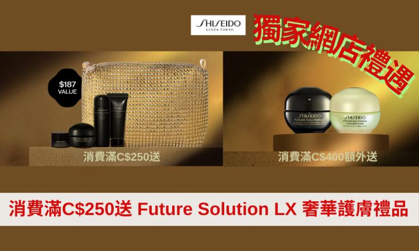 【JETSO 推介】Shiseido 獨家網店禮遇 ~ 消費滿C$250額送 Future Solution LX 奢華護膚禮品!