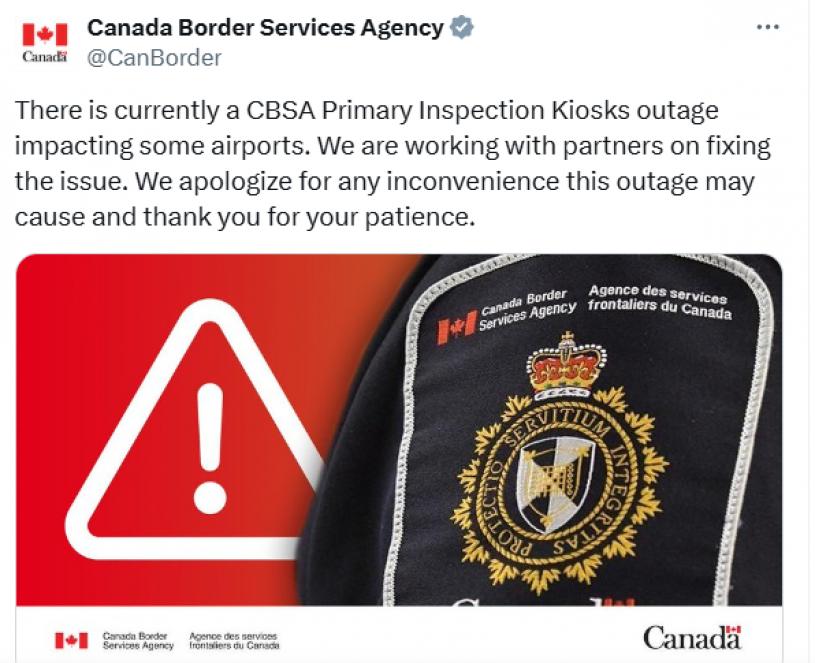 据CTV报道,发生故障的设备是用于确认入境旅客身份及提交海关申报单的自助式设施。