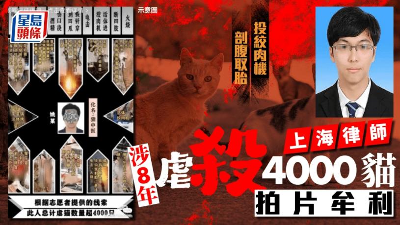 上海律師涉8年虐殺4000貓拍片牟利 律師樓:嚴厲譴責已解約