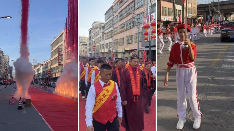 互訪聯誼當日,兩村舉行巡遊慶祝。抖音@互訪聯誼當日,兩村舉行巡遊慶祝。抖音@月入一塊八整天笑哈哈