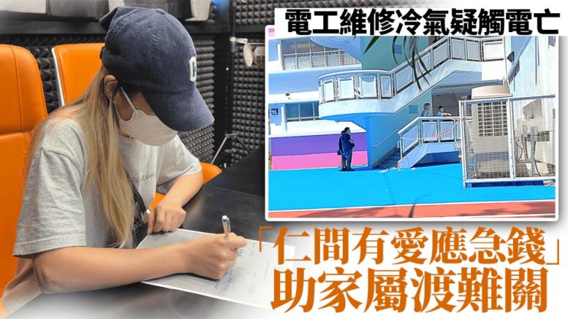 45歲電工張敬奇,上月12日在粉嶺和睦路2號一間小學維修冷氣期間,懷疑觸電當場昏迷,被送往醫院搶救,惜返魂乏術,遺下妻子、6歲女兒及4歲兒子。張妻自丈夫離世後,食不下嚥,睡不安寧;一對子女亦因喪父情緒不穩,晚上會哭醒,嚷着掛念爸爸。