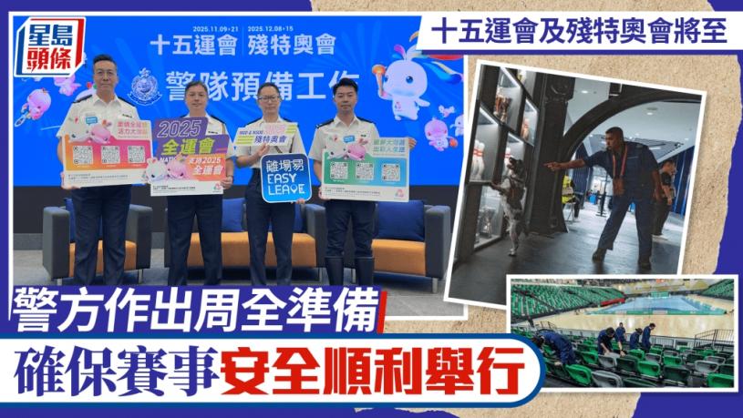 第15届全国运动会(十五运会)和全国第12届残疾人运动会暨第9届特殊奥林匹克运动会(残特奥会)将分别于11月9日和12月8日开幕,为确保赛事安全顺利举行,警方早已部署安保等工作,并多番进行桌上演练,讨论不同突发事故的应对方案,并在每一个比赛场地进行针对重大事故及反恐应变的跨部门演练,加强警队与各部门持份者的全方位协作及应变能力,又制定了人群管理和交通疏导等妥善安排,为香港成功筹办赛事奠定坚实的基础。