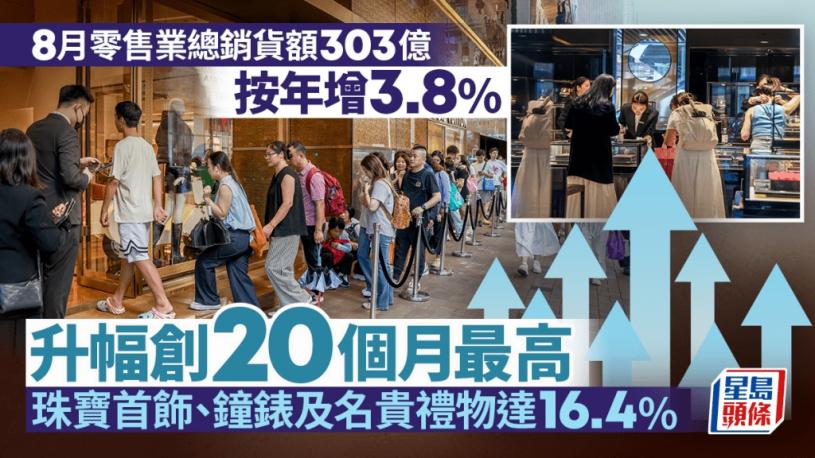 8月零售業總銷貨額303億元 按年增3.8% 連升4個月 議員料盛事帶動旅客消費