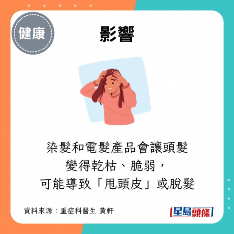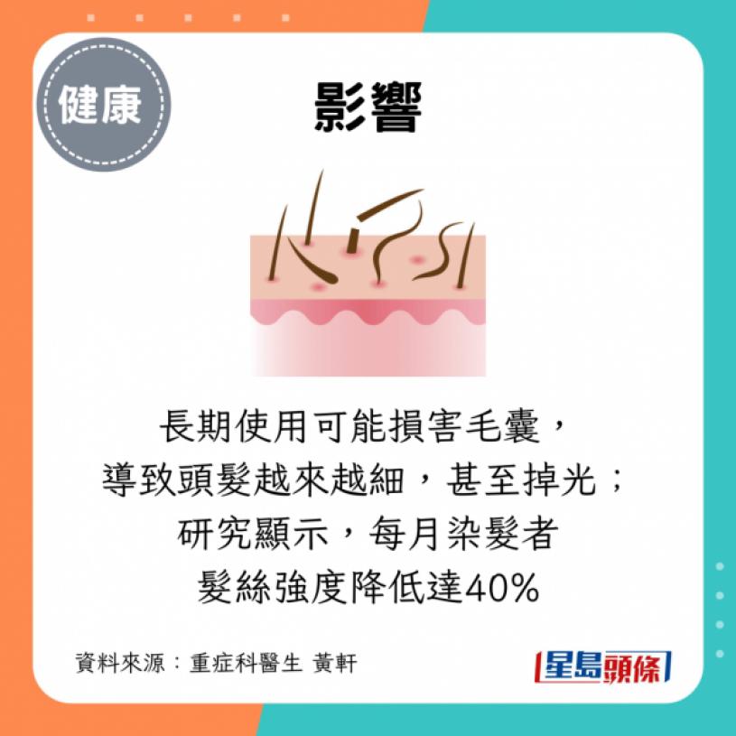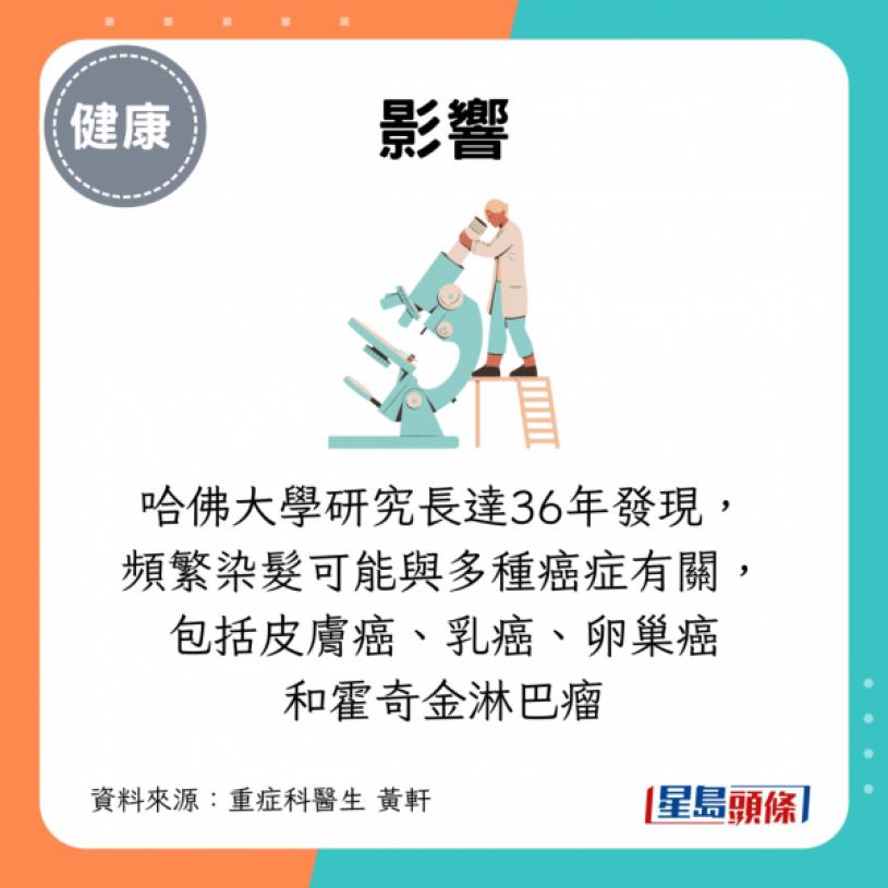 常染发除了可能导致肾脏受损,重症科医生黄轩曾在Facebook专页撰文指,染发剂的影响不只停留在头发表面,还可能深入影响健康,刺激皮肤,甚至增加患癌机率: