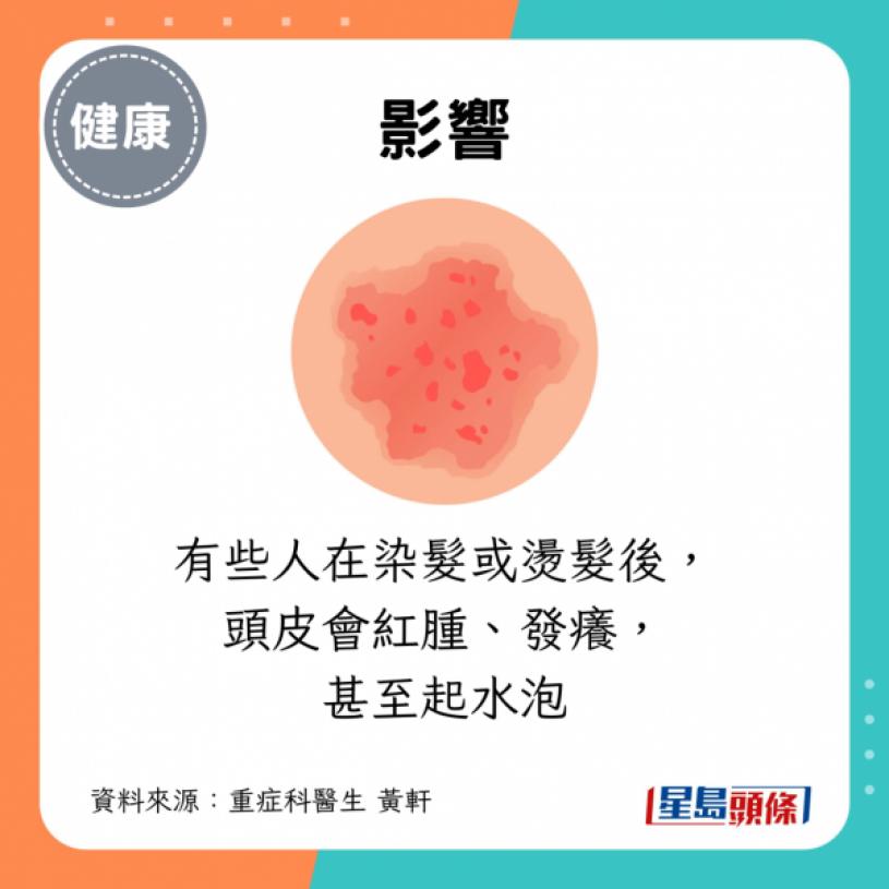 有些人在染发或烫发后,头皮会红肿、发痒,甚至起水泡,这是因为产品中的化学成分(尤其是PPD)会对皮肤造成刺激。
