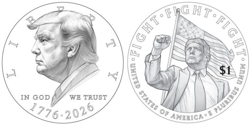 美國財政部證實,計劃鑄造印有總統特朗普頭像的1美元硬幣,以紀念美國明年建國250周年。硬幣正面印有特朗普的側面像,反面則是特朗普在美國國旗前握緊拳頭的畫像,上方邊緣刻有「戰鬥,戰鬥,戰鬥」(Fight,Fight,Fight)的字樣。