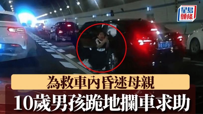 廣州一隧道內4日發生感人事件,一名10歲男童在母親於車內昏迷後,跪地向過路車輛求救,多名熱心市民立即停車協助救援,最終母子平安。獲救母親事後感慨,「我也想不到孩子那麼勇敢,孩子愛我超出我的想象」。