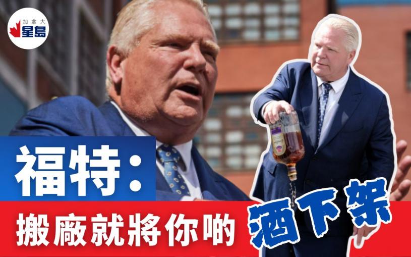 【星島綜合報道】安省省長福特周一(6日)向烈酒巨頭帝亞吉歐(Diageo)宣吿,表明若對方堅持關閉位於阿默斯特堡(Amherstburg)的裝瓶廠,將會即時把皇冠皇家(Crown Royal)與知名伏特加系列 Smirnoff 全面撤出安省酒管局(LCBO)貨架。