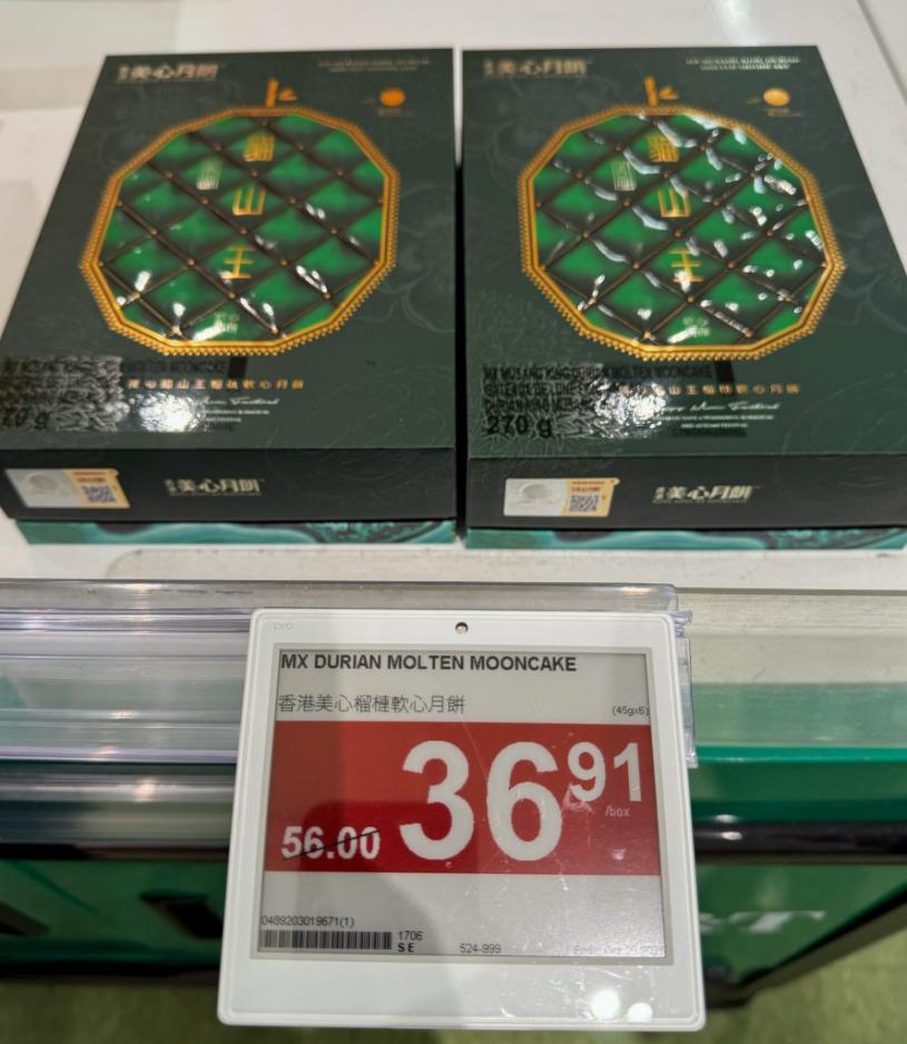 奇華由65.99元減至36.91元,約五五折;多款榮華月餅原價由62.99元減至38.91元,約六折;美心蓮蓉月則由55元減至38.91元,只有近七折。不過多款冰皮月餅就已斷市。