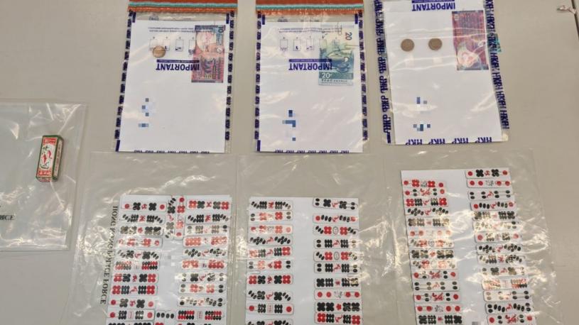 葵涌分區軍裝巡邏小隊於今日(10月8日)下午在葵盛西邨一帶打擊非法街頭賭博,拘捕3名介乎67至80歲老翁,涉嫌在賭場以外任何場所或在街道上進行賭博。行動中警員檢獲懷疑賭具及少量現金,證物圖片所見涉案賭具為「十五湖」。