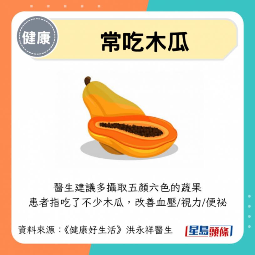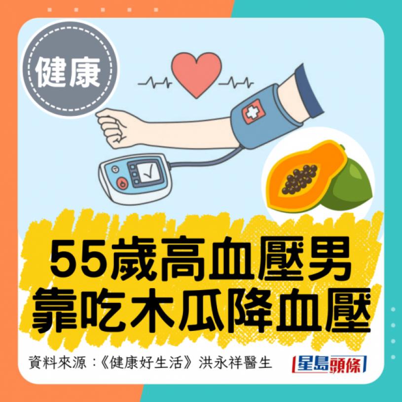 洪醫生指患者3個月後覆診,體重已瘦5kg,收縮壓降到100mmHg,之後慢慢減藥穩定血壓,最後更成功甩藥,蛋白尿減少了,腎功能也改善了。除了戒掉壞習慣、規律運動外,患者表示自己吃了不少木瓜,改善了視力及便祕問題。