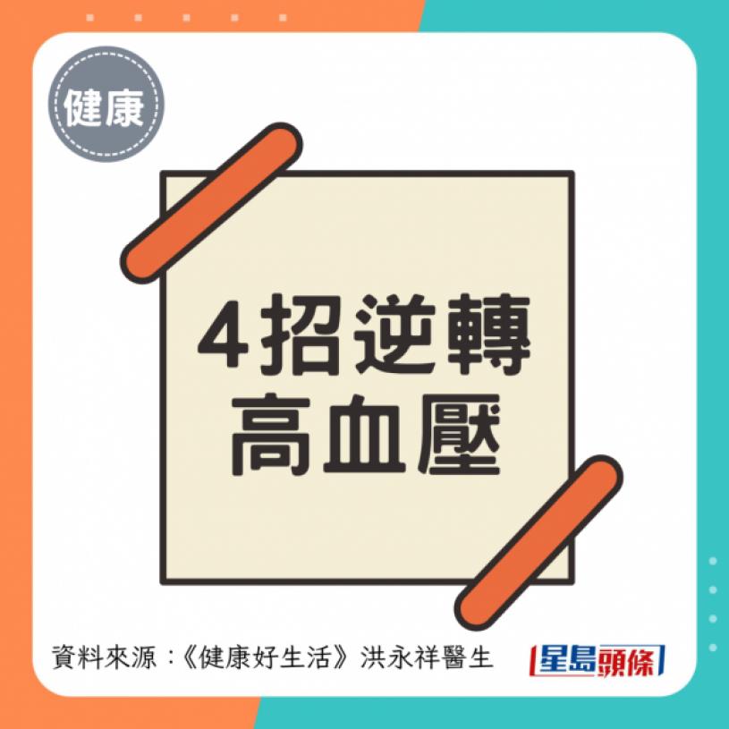 洪醫生建議患者立即改變生活習慣、努力減磅,盡量在早期逆轉高血壓,更建議以下4招: