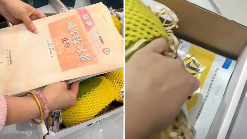 山東濟寧有商販售的芒果禮盒,近日被多名消費者質疑暗藏「課本」增重,據畫面顯示,芒果禮盒外觀正常,但打開後在芒果下方,竟赫然藏有考試卷、課本等物品,引發熱議。商販稱不知情,有可能被人嫁禍,已第一時間決定向消費者退款。