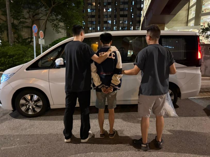 行動中,人員突擊搜查一個單位,並在單位內檢獲約五克懷疑氯胺酮、約三百四十四克懷疑「冰」毒、約二十四克懷疑可卡因及一批毒品包裝工具。單位內一名二十五歲本地男子涉嫌「販運危險藥物」被捕,他現正被扣留調查。
