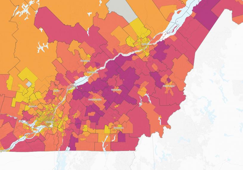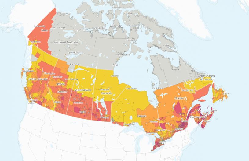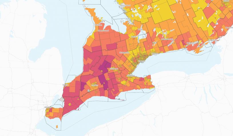根据工具显示,加拿大受影响比例最高的地区中,有三个位于安省:温莎市(Windsor)有16.4%劳工可能受波及、贵湖市(Guelph)有15.5%、大萨德伯里(Greater Sudbury)有13.9%。另外,基秦拿–剑桥–滑铁卢(Kitchener - Cambridge – Waterloo)与布兰特福特(Brantford)分列全国第六及第七,意味安省城市占据前十名的一半。