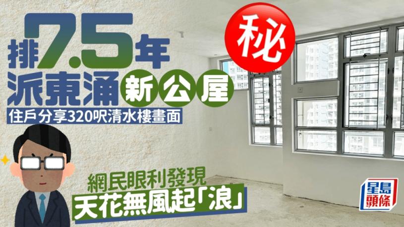 有排隊7年半獲派東涌新屋邨的公屋戶,拿鎖匙後即分享320呎清水樓畫面報喜,卻被眼利的網民發現單位天花板無風起「浪」,更有人教路用一神器觀看天花和牆身的「浪」。詳情見下圖及下文: