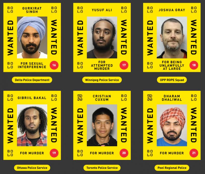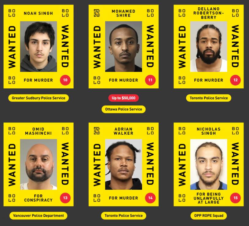 最新通緝名單涉及15個警隊,包括多倫多、約克區、渥太華、滿地可、卡加利、溫尼辟、愛民頓、溫哥華,以及安省省警等。被通緝人士涉及謀殺、誤殺、販毒、性侵未成年人等多宗嚴重罪行。