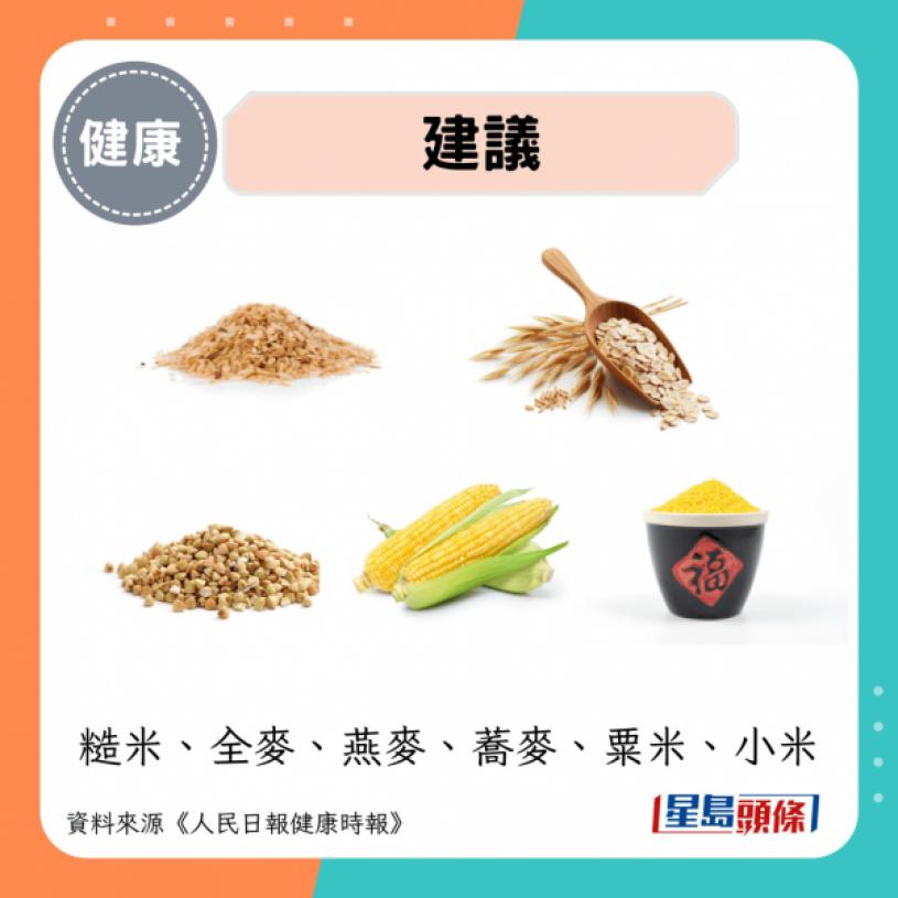 常見的全穀物包括,糙米、全麥、燕麥、蕎麥、粟米、小米等。這些食物保留了豐富的營養成分,對健康極為有益。