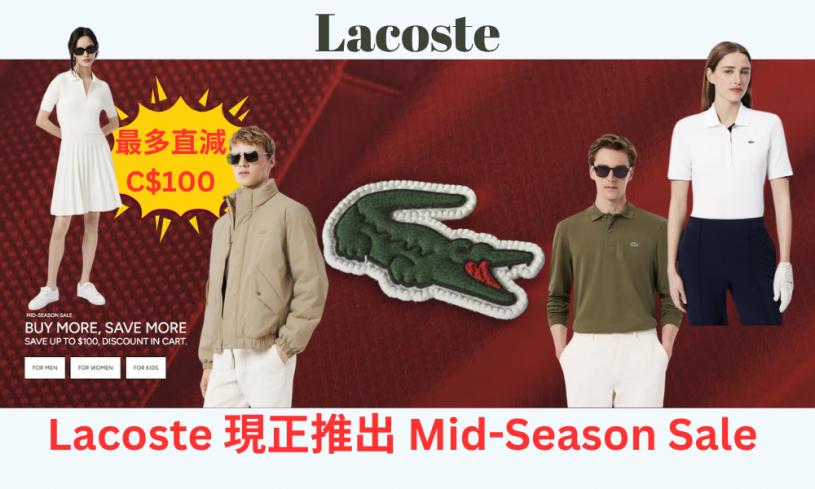 法國經典時尚品牌 Lacoste 現正推出 Mid-Season Sale 中季特賣活動: