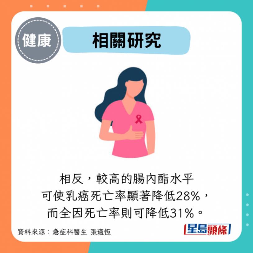 該研究發現,血液中含較高腸內酯水平者,其乳癌復發風險降低9%,乳癌死亡率顯著降低28%,全因死亡率更可降低31%。