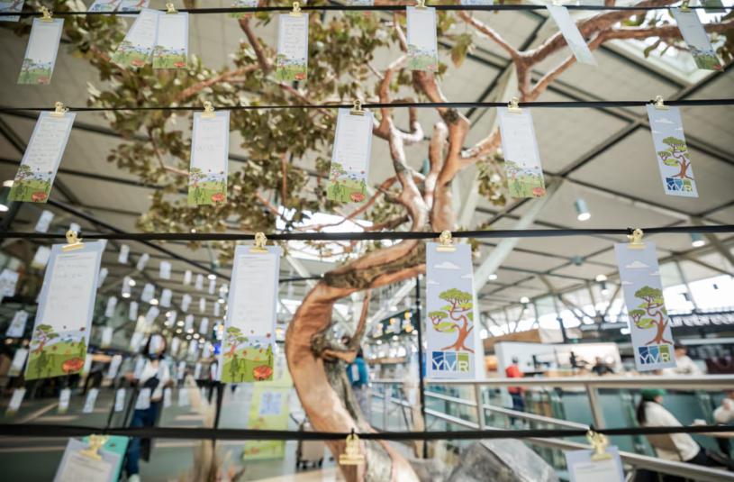 所以起飛前,不妨在國際出發大廳的 11 英尺高的金色楊梅樹旁駐足。拿一塊許願牌,記下你感激的事情,也花點時間閱讀其他旅客留下的真誠留言。