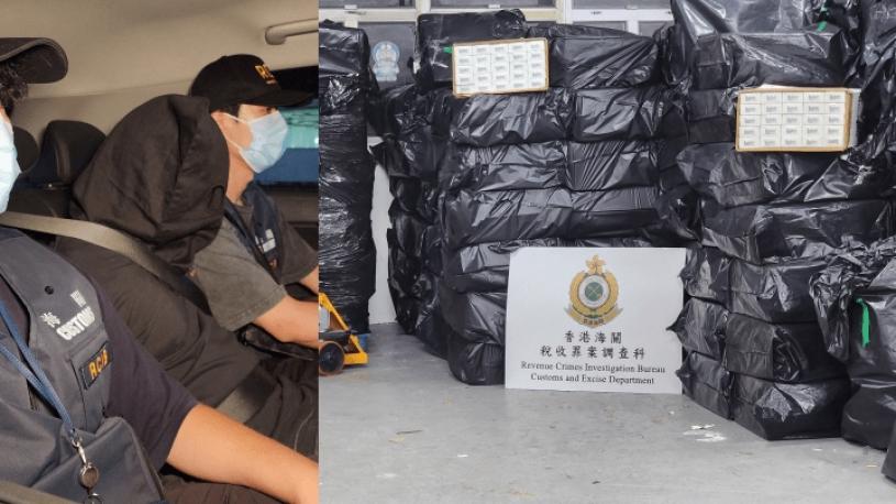 隨後,海關人員押解該兩名涉案男子到該大廈內一個單位進行搜查,再檢獲約550萬支未完稅香煙及約260公斤懷疑未完稅製成煙草。檢獲的私煙總市值約2,900萬港元,應課稅值約2,100萬港元。海關拘捕的兩名男子,分別為一名38歲報稱司機的本地男子及一名37歲無業的非華裔男子。