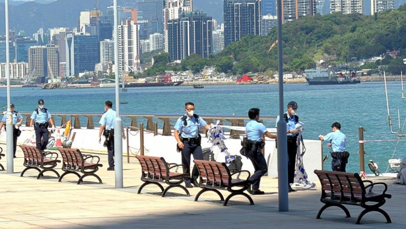 警員在小西灣碼頭一帶調查。梁國峰攝