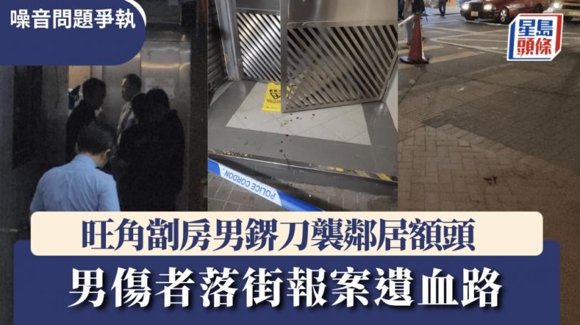 旺角劏房爆噪音衝突 男住戶鎅刀施襲後自首 鄰居負傷報案遺血路