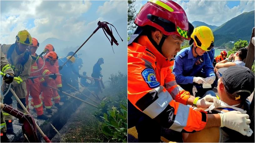 消防處聯同多部門在大浪灣舉行年度跨部門山火及攀山拯救演習。消防處FB