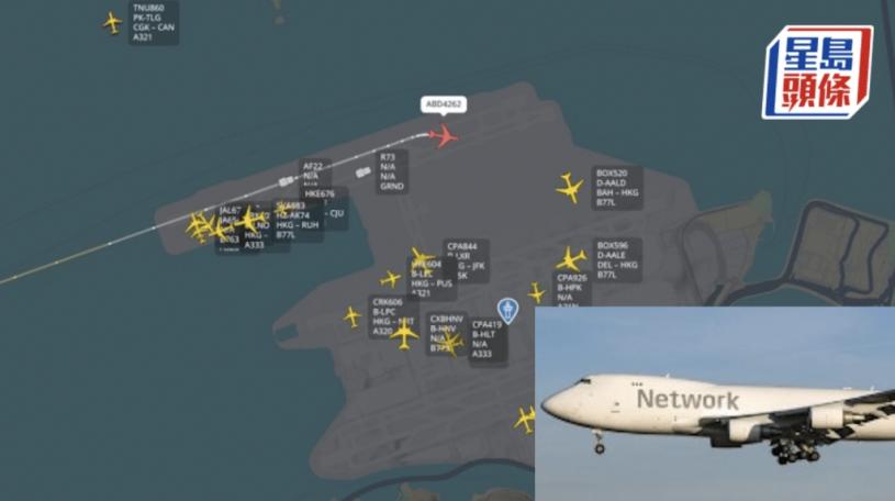 涉事航班為隸屬Network Aviation航空公司的波音747-409F型貨機(註冊編號TF-AKG),執行航班編號ABD4262。該機原定由比利時列日(LGG)機場起飛,飛往菲律賓馬尼拉(MNL)。航程約9,000多公里,歷時超過12小時。當航機接近南中國海上空時,機師發現擋風玻璃出現裂痕,隨即向香港航空交通管制中心通報,並決定折返轉降香港國際機場,以策安全。