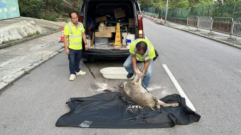 其後警方召來漁護署人員,將野豬遺體包裹帶走,並用粉末掩蓋馬路上血迹。現場一條行車路一度封閉。