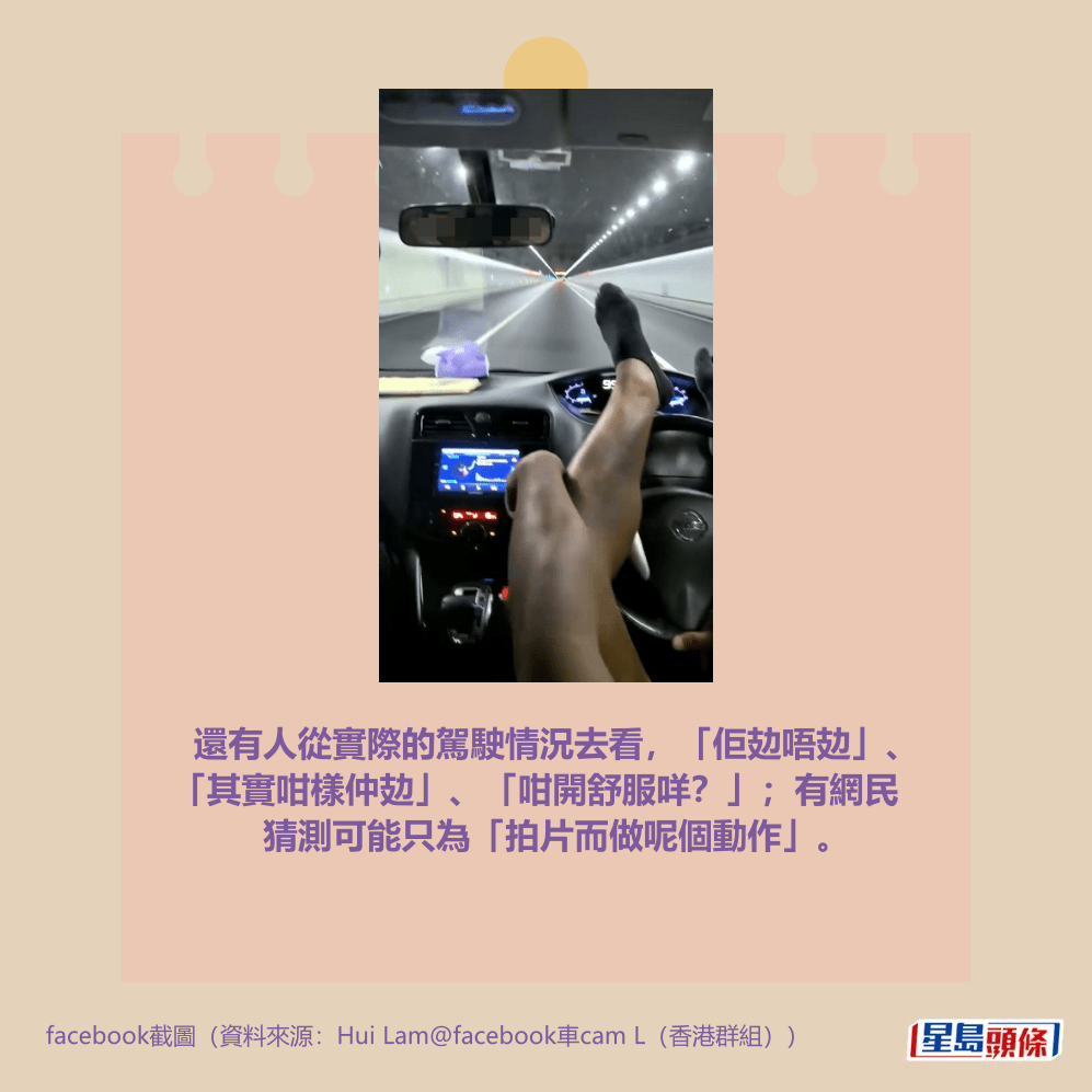 還有人從實際的駕駛情況去看,「佢攰唔攰」、「其實咁樣仲攰」、「咁開舒服咩?」;有網民猜測可能只為「拍片而做呢個動作」。