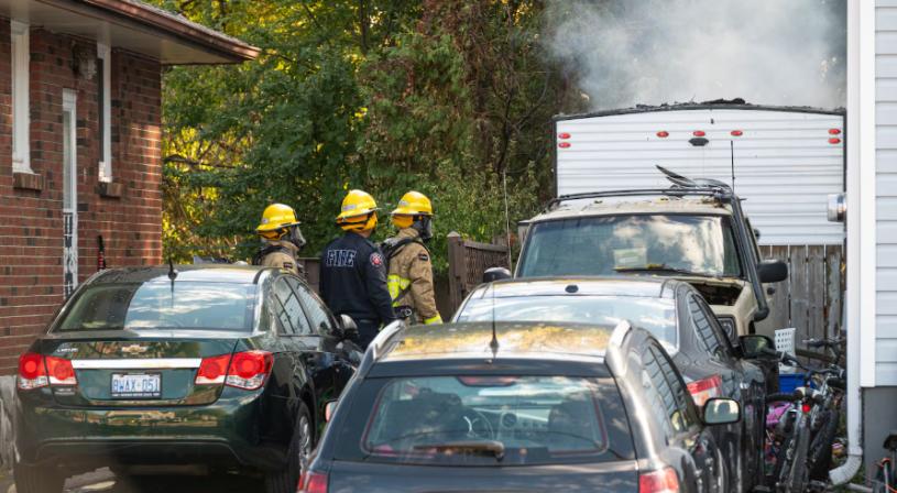 消防處於周六下午2時18分接報,指Elgin Street West夾Park Road North一帶有車輛起火及不明事故。消防人員3分鐘內趕抵,發現拖車已被烈焰吞噬。