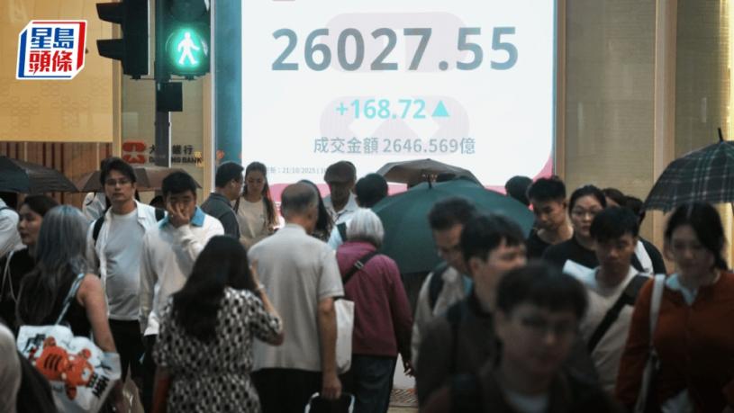 環球局勢緩和,加上美國白宮國家經濟委員會主任哈塞特(KevinHassett)在訪問中預期,美國政府停擺可能於本周某個時候結束。港股開市即重上兩萬六關口,最終則以接近全日低位收報26027點,升168點,連升兩日累升780點或3.1%,大市成交額稍為回升至2646億元。