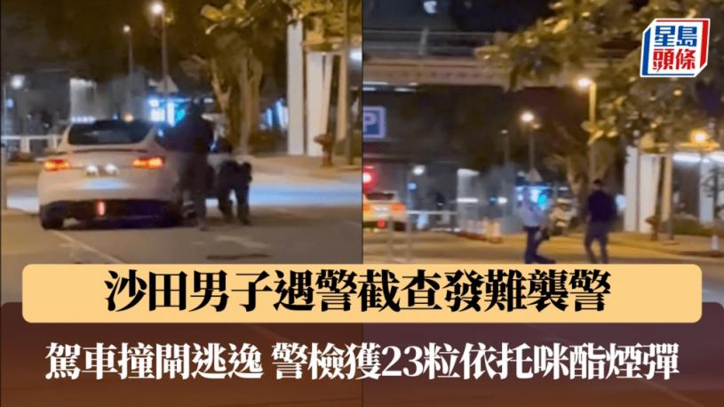 沙田男子遇查發難襲警 駕Tesla撞閘逃逸 警檢23粒依托咪酯煙彈