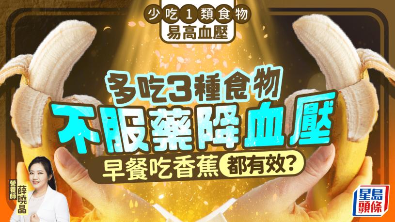 如何不服藥天然降血壓?有營養師指,高血壓患者如按時服藥,但病情仍未改善,有可能與日常飲食中缺少1種營養素有關。因此營養師建議可多吃3種食物,包括在早餐時吃香蕉,均有助使血壓更穩定。