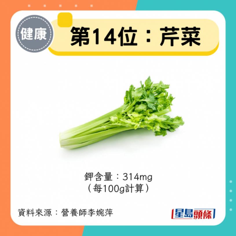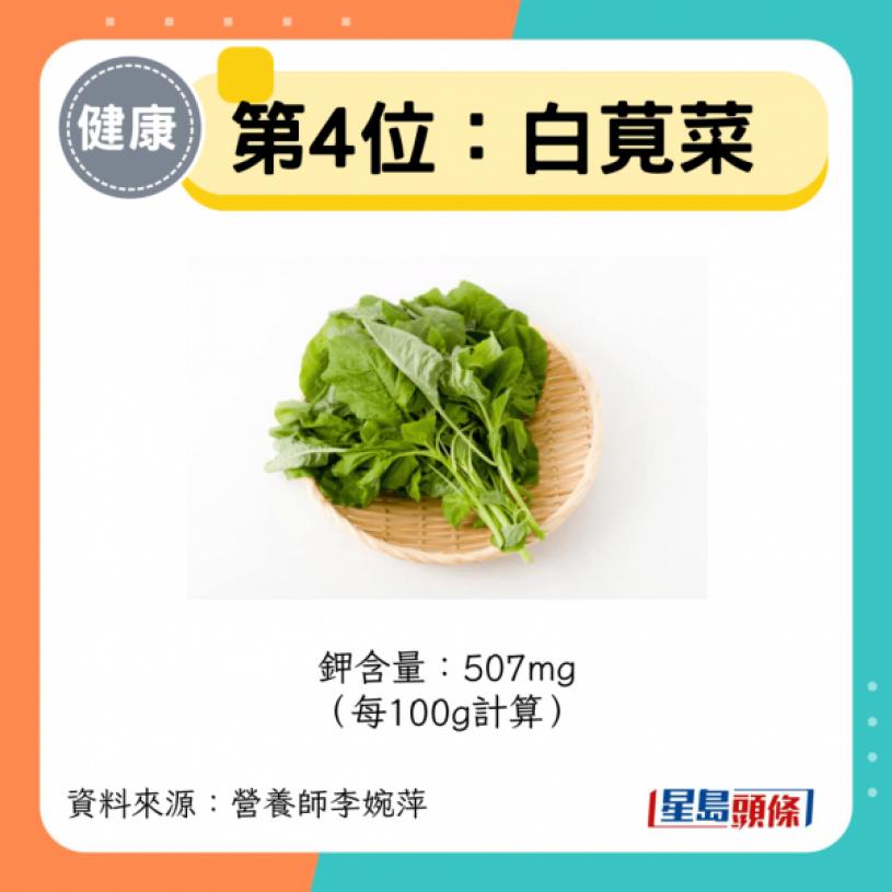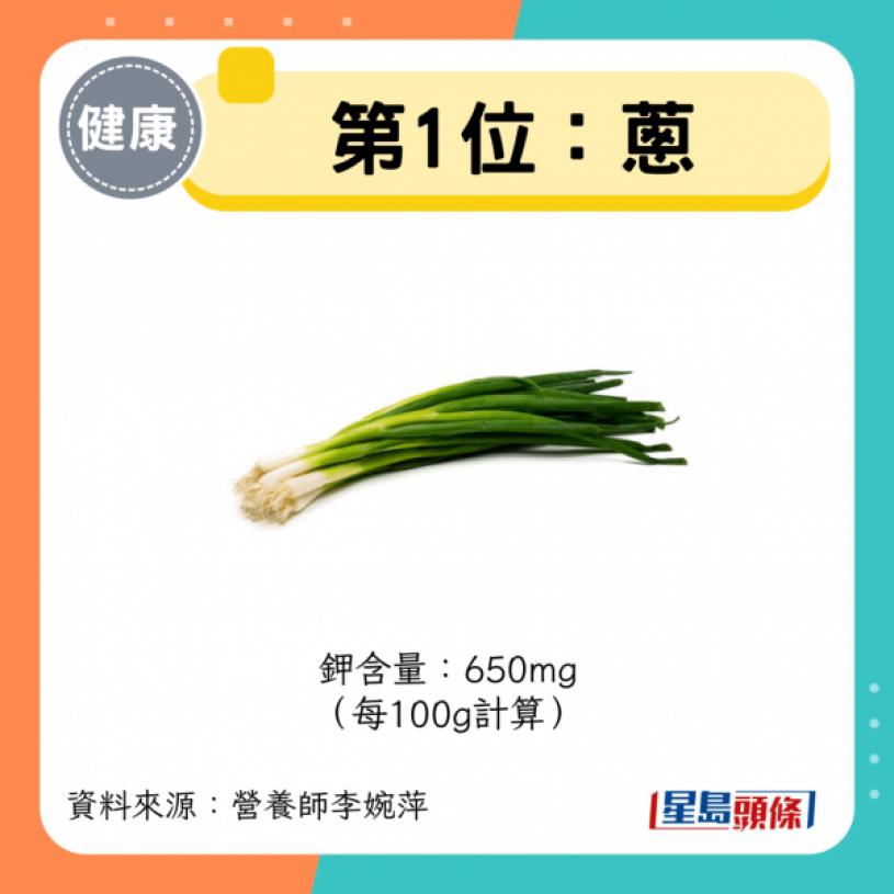 根據世界衞生組織的建議,健康的成年人每日應攝取少於2克鈉(或少於5克鹽)及至少3.5克鉀。衞生署曾調查發現,港人普遍有鈉過量而鉀質攝取不足的情況。營養師李婉萍曾整理了以下一些常見的高鉀蔬菜和水果,日常飲食可以多加補充: